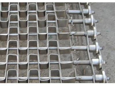 邊緣加滾輪長(zhǎng)城網(wǎng)帶有扁金屬片和圓金屬絲所組成,網(wǎng)帶自重輕,網(wǎng)孔空隙大,網(wǎng)面平整,運(yùn)行平穩(wěn),不會(huì)走偏 ,應(yīng)用:做洗滌、干燥、冷卻、熱處理的輸送線。