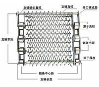 網(wǎng)帶規(guī)格: 鏈條標號 節(jié)距P 鏈桿節(jié)距P1 鏈桿直徑D 網(wǎng)絲直徑D1 網(wǎng)帶螺距L 網(wǎng)帶節(jié)距J